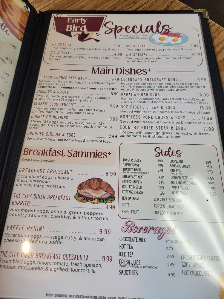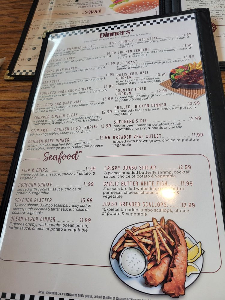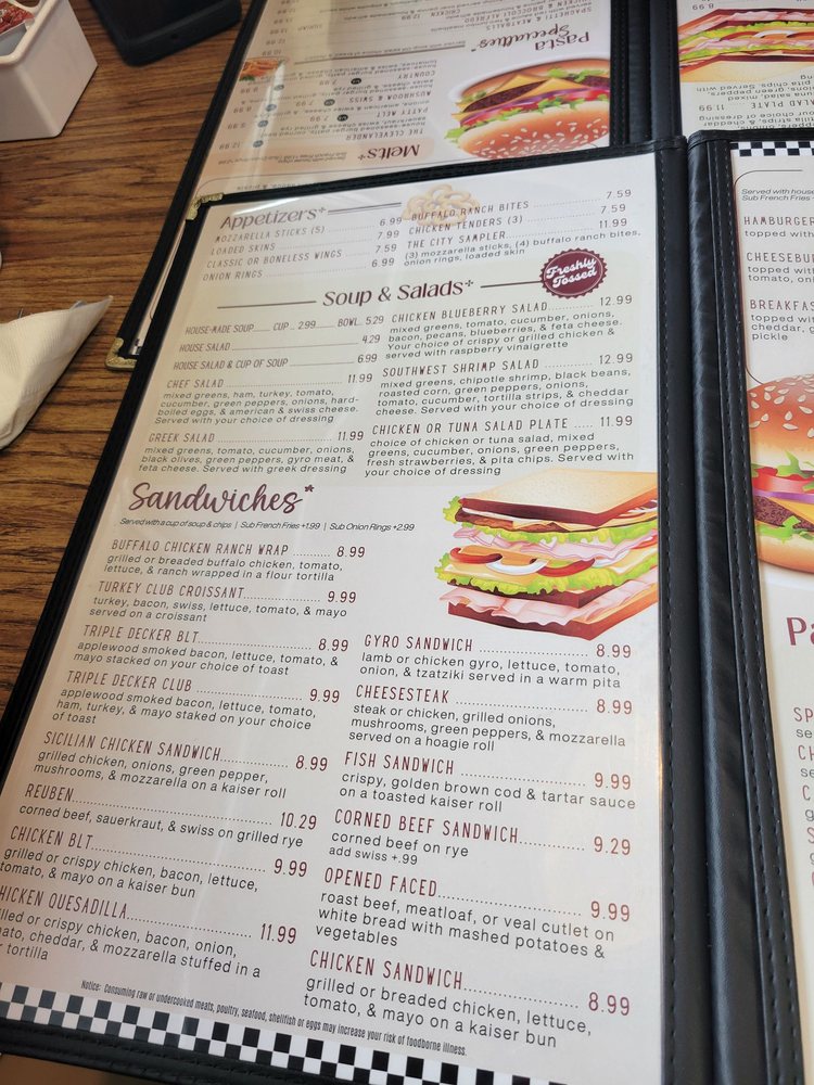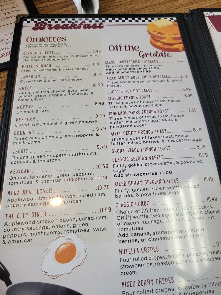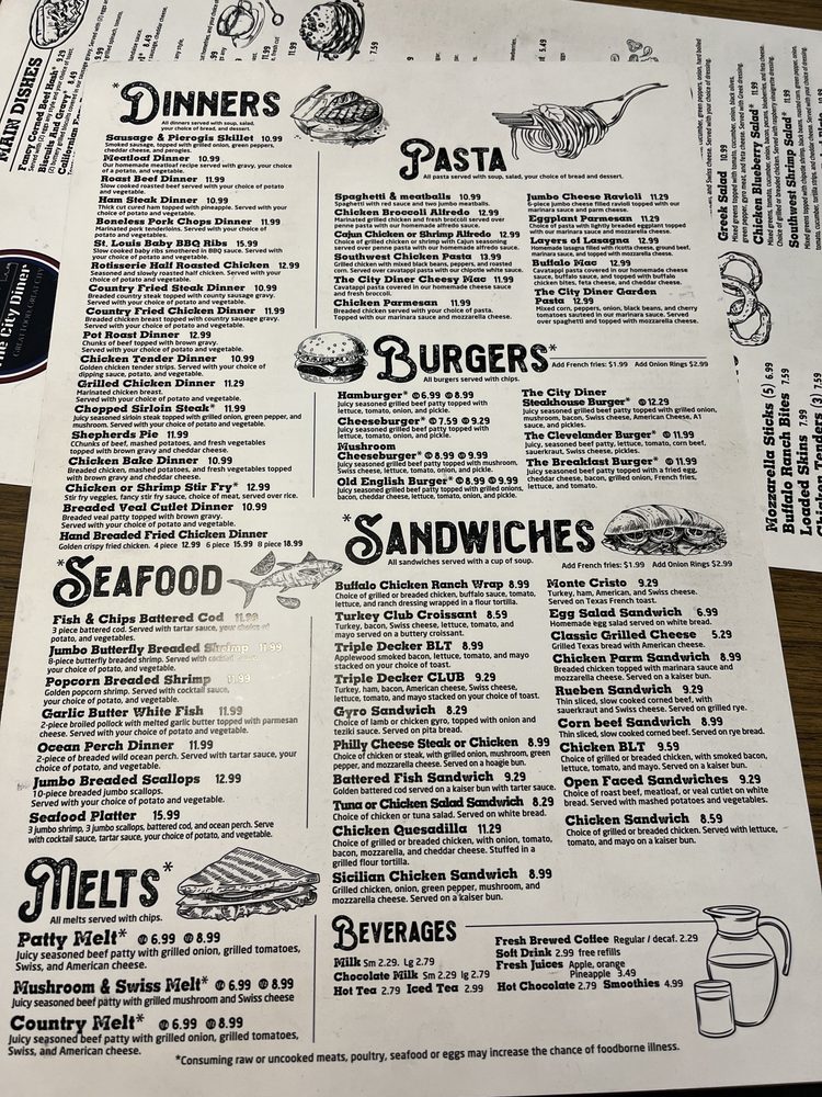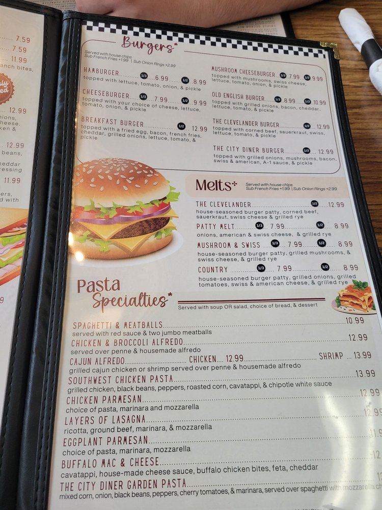 The City Diner, located in Cleveland, OH, offers a nostalgic American dining experience with a focus on breakfast, brunch, and seafood. Customers praise the attentive service, cozy ambiance, and delicious menu items. The diner provides a wide range of utilities like delivery, takeout, reservations, and catering, making it convenient for various dining needs. With offerings like pancakes, French toast, sandwiches, and desserts, The City Diner caters to both solo diners and groups. While some note minor issues like greasy dishes and weak coffee, many appreciate the accommodating staff and tasty food options. Overall, The City Diner stands out for its welcoming atmosphere, efficient service, and satisfying meals, making it a must-visit for those craving a classic diner experience.